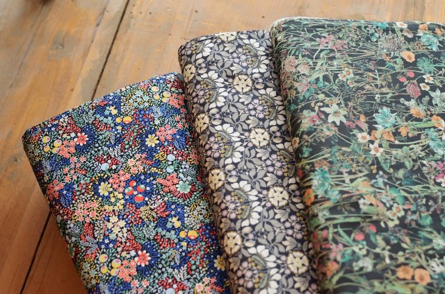 リバティプリント、少しですが入荷しました。 写真左から・・・ Elderberry (2017aw) Persephone (定番) Wild Flowers (定番) 秋冬のお洋服向けにシックで深い色合いのものばかり そしてコーデュロイも届きました。 Elderberry (2017aw) スカートやプルオーバーに お子さまのワンピースにも華やかで可愛いですよ。 同じ柄、同じ色の Eld...