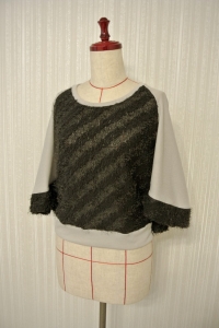 リボンを作って♬ ポケットにつけました。 ラメストライプのウール地で仕立てたケープ❤ 残す作業はボタンつけ&ボタンホール。 11/9日曜のイベント「ふんわりオトナ文化祭」に出展予定のケープです☆