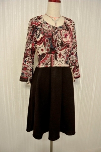 Flor Blanca(フロールブランカ) オリジナルラインをご紹介します。 Dahlia(ダリア)ラインよりタックフレアワンピース(レトロなバラ柄×バーガンディ)♥ Flor Blanca Original Dahlia - ダリア タックフレアワンピース ☆ レトロなバラ柄×バーガンディ Material 表地 テンセル95%カシミア5%、スカート部分(BUR)ウール100% 裏地 ポリエステル100% Size 38 Color バラ柄×バーガンディ 英語でDahlia。ダリアの花言葉は、華麗、優雅、威厳。 後ろ...