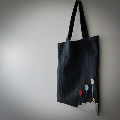 少し緑がかった紺の 墨のような色の厚手のコットンで、手提げをつくりました。 このコットンは はじめにノーカラーコート 次はブラウス そして、最後にこの手提げ と 三度も、縫っては解かれを繰り返したもの。 (出来栄えが悪く、つい解いてしまった) 繰り返し縫われ、着られ、洗濯され、 アイロンを当てられ、また解かれて そのたびに少しずつ色褪せて柔らかくなり 色合いも風合いも 本来のものとはずいぶん変わってしまったような気がするけれど それはそれでこの布の味になってきたように思い...