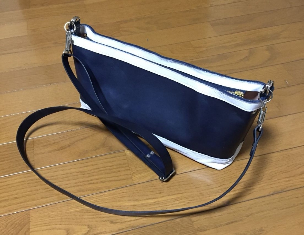JUGEMテーマ:ハンドメイド雑貨のお店 JUGEMテーマ:レザークラフト 仕事の合間をぬって少しずつ制作していたレザーポーチが完成しました! 制作前のコンセプトは以下5点。 ?女性が使用する ?長財布がスッポリ収まり出し入れし易い ?余分な物を持ち歩かないよう出来るだけコンパクトに ?小さな内ポケットを取り付ける ?基調色はネイビーブルー 出来上がってみると長財布を二回り大きくした感じのポーチに仕上がりました(^^; とりあえず今回の作品はパイロット品として身内...