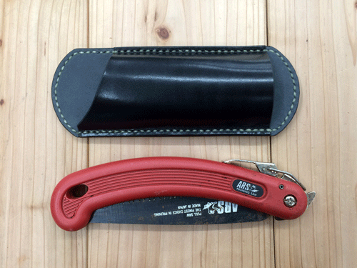 JUGEMテーマ:レザークラフト 剪定に使うノコギリのケースを製作しました! 注)剪定(せんてい)庭木の枝を切ったりすること 注文を頂いたのでは無く、普段お世話になってる方へのプレゼントとして製作しました。 以前剪定バサミのケースをプレゼントしたので今回はノコギリのケースにしました! 形はとにかくシンプルにして作業の邪魔にならないようにしました。 裏はベルトループがあるだけですが、斜めにすることで角度をやや上に向けて ノコギリを...