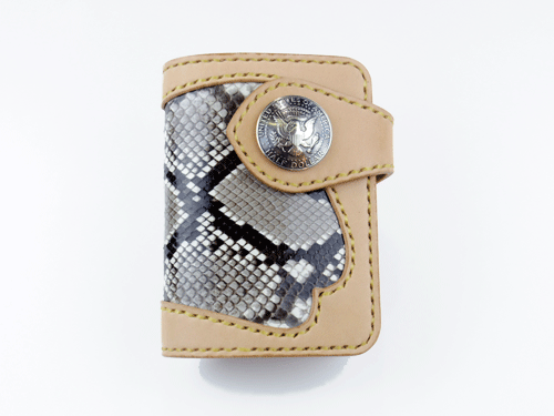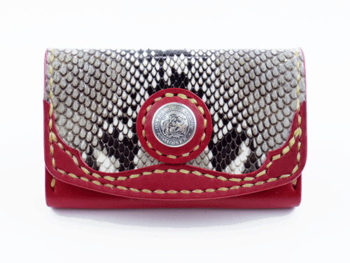 JUGEMテーマ:レザークラフト オーダーメイドの名刺ケースです。 ご注文の内容はデザインはおまかせで、革の色はダークレッドにダイヤモンドパイソンの柄を入れる。 開閉はマグネット式で飾りに竜の古銭コンチョをつける、という事でした。 出来上がったのはこちら↓ 後ろはこんな感じ↓ 名刺を入れるスペースは1ヶ所ですが、何十枚かをまとめて収納出来ます! 製作するのに参考にしたのが...