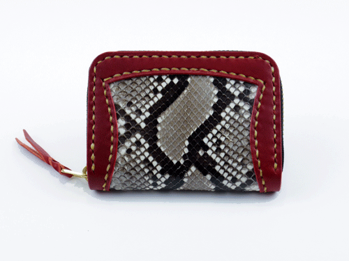 JUGEMテーマ:レザークラフト 前回「ミニコインパース」の紹介をしたので、今回は「スモールコンパース」の紹介です。 ↑ スモールコインパース ダークレッド(インレイパイソン仕様)縫い糸ナチュラル ¥11,500 サイズは約 縦70mm 横100mm 厚み23mmで「ミニコインパース」よりは少し大きい程度です。 仕様は、小銭入れには仕切りがあり、小銭を2カ所に分けて収納出来ます、カードもギリギリですが 2枚は収納することが出来...
