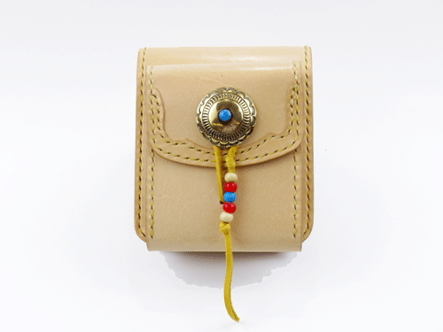 JUGEMテーマ:レザークラフト 今回もオーダーメイドのスマホケースの紹介です! ベルトに取り付けて使用するタイプで、スマホを横向きに収納します。 外見はコンチョに革ヒモを巻きつけて止めるタイプですが、コンチョの下にマグネットを内蔵しており マグネットで開閉できます。 革ヒモはデザン的な部分もありますが、製作してすぐは、まだ革が硬い為に被せの部分が開き易く 簡単に開くのを防ぐ為に付けてあります。 使用していく内に革が柔らかくなり、簡...