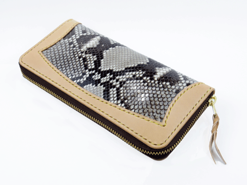 JUGEMテーマ:レザークラフト 少し前に製作しました「ジッパーロングウォレット」 カラー ナチュラル(インレイパイソン)(縫い糸ナチュラル)です。 通常のジッパーロングウォレットは中に小銭入れがありますが、スマホが収まるように 小銭入れの部分をカスタムしてあります! パッと見た感じは真ん中に札入れがあるだけに見えますが、マチをつけてあるので ある程度の厚みのあるスマホでも収まります。 カード類もあんま...