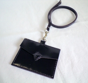 JUGEMテーマ:レザークラフト 新商品のご紹介です。 IDカードケース ラブレター ビターチョコブラウン 素材:牛革、メッキ金具 サイズ:横9.8cm,縦7.5cm,厚み0.5cm 金具の部分:(Dのかたちの直線部分)1.5cm ストラップの長さ:ひもの幅7cm,全長90cm(フック金具を除く) 価格:2484円 こちらの革はつやがあります。 写真では黒っぽいですが、ダークブラウンです。 ハート部分も同じ素材でつくったので、表向きはよくわからないかもしれませんが ラブレターのかたちです。 目立たぬよう...