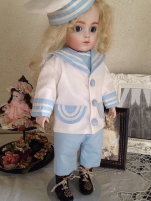 JUGEMテーマ:ドール服 帽子ができたので、同じ身長のブリュに試着してもらいました。 ウィーン少年合唱団っぽい♪ そして、微妙なサイズ感・・ww 帽子のベルトが太すぎたので、直します。 あと、靴と靴下を作って終了♪ そろそろビスクドレスを作りたくなってきたなあ〜