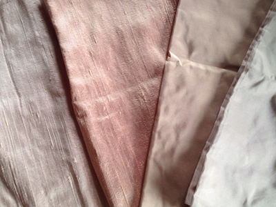 JUGEMテーマ:ドール服 ピンクでも色々あるなあ・・と生地を見ていて思います。 シルクはお安くはないので、それほどストックは置けませんが、家にあるものだけでも、こんな感じ・・ 向かって左からスモークピンク、ピーチピンク、ダスティローズ、ソフトピンク(ほとんど白く見えてる 汗) 左2枚はシルクシャンタン・・ネップが特徴で少し扱いが難しいです。 右の2枚はシルクタフタ・・デザインの表現がしやすく扱いやすいですがちょっと高価です。 パソコン上で色の表現はとても難しい・・ モニターによっても...