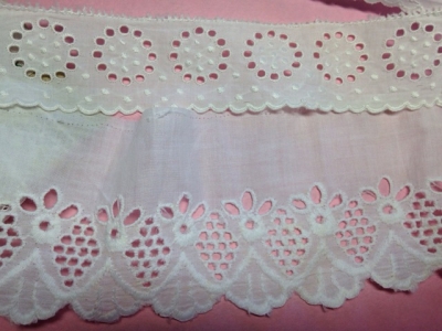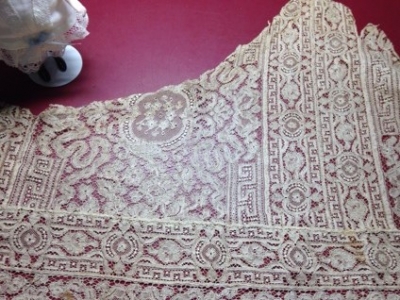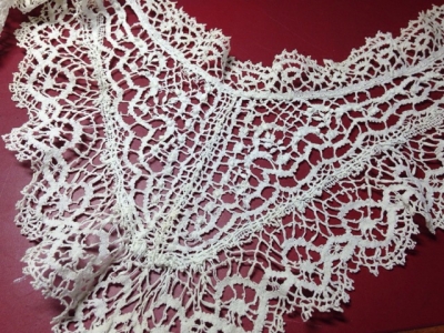 JUGEMテーマ:ドール服 アンティークレースは、トリムになってるものはすぐに使えて便利ですが、なかなか思ったサイズや柄が手に入らない場合もあります。 これは人間用の付け襟。 これもボビンレースでしょうか・・ とても糸が細くて繊細で美しいです。 付け襟はそれほど人気が無いのか、意外とお値打ちに手に入ります。 こういうものをストックしておくと、便利に使えたりします。 解体して洗って生乾きのときにアイロンで伸ばすと、とてもきれいなトリムが出来ました♪ 長いほうで1mぐらいはあります...