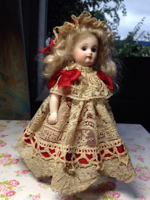 JUGEMテーマ:ドール服 お洗濯してそのまましまってあった、アンティークのドレスピースを解いて・・ 小さなドレスを作っています。 モデルは16cmのアマンダさん。 レースの下になる赤のワンピースを作って・・ 赤はアンティークドレスではあまり見かけないけど、お人形らしくてかわいいですよね♪ ドレスは形になったけど、ボネットの形を考えてます。 ボネのほうは、レースの透け感を活かしたいな・・