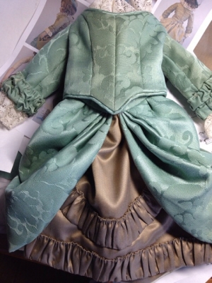 JUGEMテーマ:ドール服 昨日はどこへも行かなかったので、結構進みました♪ でもまだ裏も付けてないし、袖付けは今回は内袖と外袖のあるタイプなので、手間がかかりそう・・ ボネットもあるしね・・ 後ろのここは、折り紙みたいでかわいいけど、ヨーロッパの人のデザインなんだよね。 不思議〜 ボタンはこのデザインのドレスなら、シルクボタンを使いたいけど、うちにあるアンティークのボタンは濃い色ばかりです。 大きさは茶色のほうぐらいがバランスいいかな・・ ボタンの色、パイピングの色と合わ...