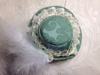 JUGEMテーマ:ドール服 帽子です♪ ブリムの一部が折れ曲がった形です。 斜めに被せると・・ 羽根は手持ちのを付けました。 ずいぶん前に手芸店で買ったもの。 ウェディンググッズに付けるパーツなので、白過ぎるけど・・ かぎホック、まだ付けてない〜 面倒なことをあとまわしにしてしまうと、気が重いなぁ・・ 今夜ぼちぼちやります。