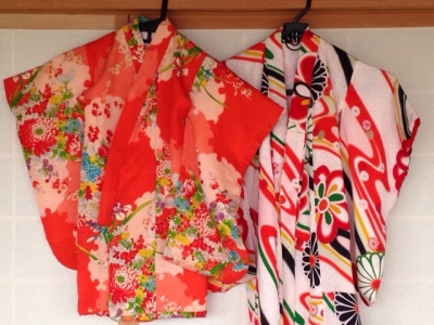 JUGEMテーマ:ドール服 今日もどんより曇って暗いですが・・ 着物の方は、肩上げ・腰上げがまだです。 18号だと、人形の着物でも、結構長さや幅が必要なのですね。 いただき物の子供の着物を解いたわけだけど、中振袖だったので長さが足りず、腰上げのところで継いであります。 かさねのほうは、とも八掛にしました。 貴重な縮緬布は、ちまちまと使わなくっちゃね〜 これから長襦袢と帯! 小さい人形なら三尺がかわいいけど、大きな子なので、やはり付け帯を作ります♪