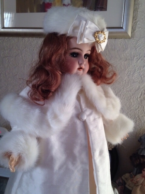 JUGEMテーマ:ドール服 白いシルクシャンタンで、昔の女優さんみたいなコートを作ろうと思い、最初はFB12のブリュサイズでやりはじめたらなんともバランスが悪いので、もっと大きい子にモデルを変更しました。 型紙があるときはいきなり表地から作り始めるけど、今回はサイズに迷いがあって、はじめてのパターンだったので、試しに二度仮縫いして(簡単にだけど)ボツにしてしまった。 48cmのジャーマンに・・ これぐらい大きいと、ファーの付いたドレスもしっくりくる。 それでも「着せられてる感」はありますけ...