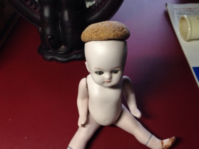 JUGEMテーマ:ドール服 先日ご紹介したドイツのミニョネット ゴムが伸びてグラグラで、ペイトもないのでウィッグが陥没しています。 まず、衣装を脱がせて・・ がっちり縫い付けてあるので、慎重にはずして・・ ウィッグもしっかり貼りつけてあって、接着剤が硬化してるので、カッターで削るようにして・・ 傷を付けないよう慎重に・・ ビスクは硬いのである程度ガリガリしても大丈夫みたいだけど・・ ゴミがたくさんでるので、新聞紙を敷いて。 ここまできれいにしたら、あとはメラミンスポ...