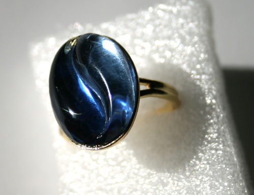 ある通販ショップさんで、妹がひとめ惚れしたストーンで、 リングを作りました。 まずストーンに惚れ、 届いて絶賛し、 しかし難しい…何にしよう…と悩み、 彼女はリングを選択しました。 11月にあったイベント前に、「イベントに着けて行きたい」という事で、 手持ちのリングセッティングパーツと合わせ、 プレーンな、ストーンの魅力を存分に味わえる品になりました。 勾玉が合わさったみたいなデザインになっていて、 画像右側のブルーは少し薄くなっています。 シンプルだけ...