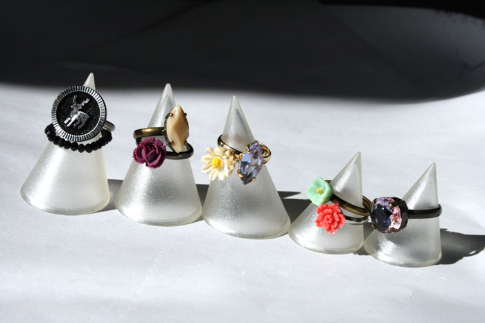 とりあえず現時点でこれだけご用意してみました。 ため込んでため込んで眺めるだけ眺めていた子たちを、 この機会に旅立ちの準備としました。 どなたかの手を飾ることになるかどうかはまだ分からないけれども リング台に付けたから、 もうリングとして存在しています。 一番左のカモシカさんは、ヴィンテージボタンでした。 足を取って、リング台に貼り付けました。 同じ岡山のヴィンテージビーズの通販ショップさんから購入。 何年も前に買って、可愛くて使えずに、ずっと眺めていました。 そういうのめちゃ...