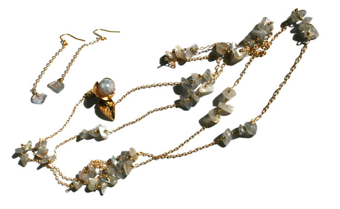 本日アップいたしました、 ラブラドライトのさざれ石を使った セットアクセサリーです。 (ロングネックレス・ピアスそれぞれ別売りです) ピアスのさざれは、極薄です。 選んで選んで、バランスと色こだわりましたv パッと見シンプルなロングピアスですが、 ラブラドライトって、ほんと個性的。好き。 &nbs...