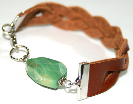 下の記事にもちょこっと書いてますが、 ブレスレットのサイズ感について少し。 これも昨年のイベント合わせで、 メンズサイズ(高校生の息子の手首サイズ)で作り、 出していたのですが、 自宅に遊びに来ていた友人が気に入って購入してくれて、 彼女のサイズに合わせて作り直しました。 革に天然石を使用したものです。 この石は、天然石を購入し始めた当初に購入したもので、 「グリーンカルサイト」との表記でしたが、 カルサイトにこういうカラーあんま見ないんですよね。 でも、産地等...