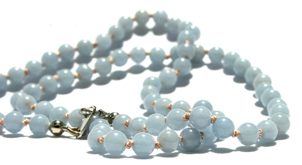 こういうのも作りました、という、 エンジェライトのブレスレットです。 ロングサイズなので、ネックレスにもなるよ、みたいな。 おひさまカンカンに当たってて、ちょっと石が透けてます。 色もよりライトに映ってますね。 姉が、この石が好き、と言ったので、姉に作りました。 えー、…何年前だろう///;多分、下の写真とそう変わらない気が…する。 もちょっと後かな。です。 エンジェライトのラウンド4ミリを、 グリフィン糸のライトピンクで結び結び。 セットのピアスも作りまし...