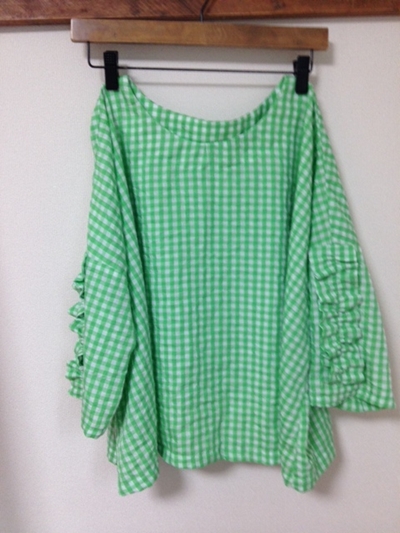 JUGEMテーマ:ナチュラルな服と雑貨 すごく軽い綿のリップルで袖フリルのブラウスを作った。 この色と柄とデザイン、可愛いぃ〜〜。 やや後ろ身頃が短いので、今度は丈全体を少し長めに作ろうと思うんだ。