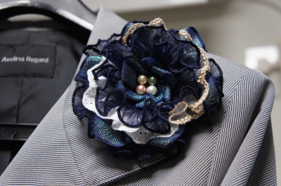 <プリーツジョーゼットリボンのコサージュ> 卒園・卒業・入園入学コサージュの、少し落ち着いたタイプを作ってみました。 紺色のコサージュもいいんじゃないかな〜、とずっと思っていて、 やっと作りましたが、主役の紺のプリーツジョーゼットリボンがお店で見た時より、 持ち帰って見てみると、以外と色が濃い***暗い。 お店の照明が明るくて綺麗な紺色に見えてたのね・・・・・ なので紺一色の予定が、一応<卒園・卒業・入園入学コサージュ>のつもりで作ったので真っ黒に見えるのはちょっと・・・・・ ...