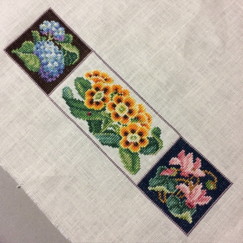 JUGEMテーマ:クロスステッチ♪ 2つ目のお花が完成しました。 プリムラかな? 紫陽花の右にいます。 これが一番下の真ん中になります。 Qスナップいい感じです。 気に入ったので、大きいサイズ、追加で注文しました。 真ん中くらいになったら使えそう。 Sandy Orton "Nature's Wisdom" DMC 32ct リネン