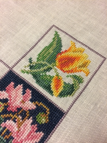 JUGEMテーマ:クロスステッチ♪ ぼちぼちと進めています。 右上にチューリップを刺しました。 これはシクラメンと比べると色変えが簡単でした。 全体はこんな感じ。 ここから左に進んでいこうと思います。 Sandy Orton "Nature's Wisdom" DMC 32ct リネン
