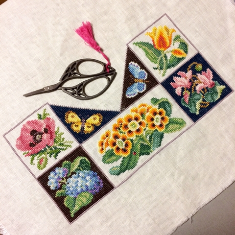 JUGEMテーマ:クロスステッチ♪ 少し前のことですが、 クロスステッチの区切りのいいところで記録。 今回刺したのは、 ハサミの先のピンクのお花。 このお花はなんだろう。 なんとなく知ってる気がするんだけど、 突き詰めて調べるほどの気力はなく。 それなら先に進めようかな。笑 Sandy Orton "Nature's Wisdom" DMC 32ct リネン