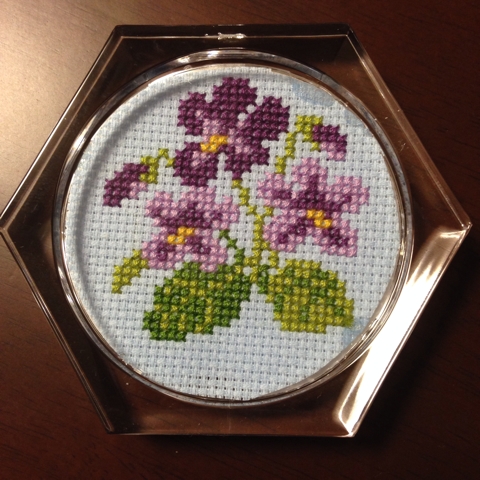 JUGEMテーマ:クロスステッチ♪ クチュリエさんの 「誕生月の花々でおもてなし クロスステッチで描くクリアコースター」 の会より、3月はすみれです。 アップするの忘れてて 危うく4月になっちゃうところでした。 全体 花言葉は 小さな幸せ、誠実、愛 近くから 最後にする布カットの位置をなんか失敗して、 お花が真ん中に来なかったです。 もうちょっと下めにカットすればよかった。 でも2色と少ない濃淡の紫ですみれを刺すのは楽しかったです。