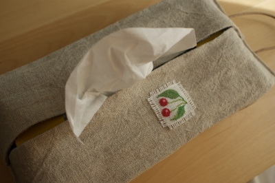 JUGEMテーマ:クロスステッチ♪テントステッチで刺したチェリーをティッシュケースカバーに縫い付けました。周りはフリンジに仕立てています。目的もなく刺してそのままになっていたのですがとても可愛らしいワンポイントになりました。