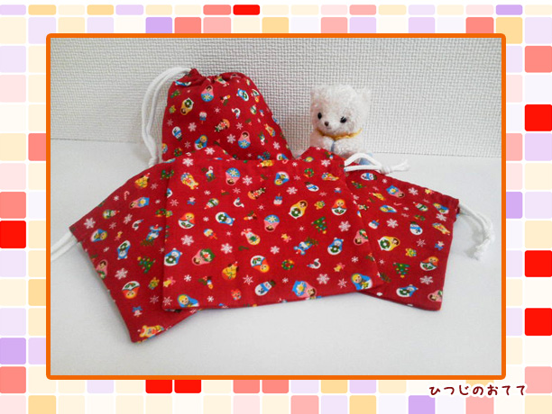 JUGEMテーマ:子育てしながら HANDMADE♪ 作品名:【送料無料】クリスマス柄ミニミニ巾着3枚セット クリエイター:ベビーキッズ布雑貨好き ひつじのおてて 作品価格:1,000円 作品説明: クリスマス柄の小さな巾着袋3枚セットです。 クリスマス会などのプチギフトを入れるのにどうでしょう? お菓子や女の子用ヘアクリップなど、小物を入れて 気取らないけど100均とは違う可愛いプレゼントに♪ -*-*--*-*-*-*-*-*-*-*-*-*-*-*-*-*-*-*-*-*-*-*-*-*-*- 〜片絞り巾着袋〜 布の厚さ:普通 縦x横 :約14cm...