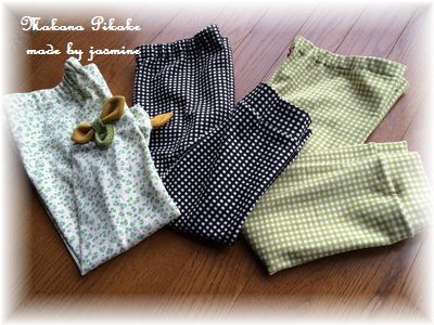 JUGEMテーマ:子育てしながら HANDMADE♪ トップスに集中してボトムスが不足という何ともバランスよく作れない私・・・ 只今縫いモチ上々 飽きずにせっせこ量産中♪ 縫いモチがあり過ぎて色んなものが気になり脱線しそうです。。 ぃぇ…してるんですが、まず作ったものを順にね(*`艸´)ウシシシ 何とも面白みのない完成にガッカリしないで見てやって下さい。 pattern:Mahoe Anela/裾リボンスパッツ【size130】 fabric:slow boat/40/コーマスムース クララ【グリーン】 ...