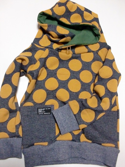 JUGEMテーマ:子育てしながら HANDMADE♪ おはようございます^^今日は以前から作りたかったOne's oneさんのモイフーディ。120サイズを2着。保育園にはスモックがあるのでこのフードだと、確実に着れない。なので、作るの迷ってたら、100と110の型紙がサイズオーバーしてしまいました。゚(。´ノω・`)゚。もったいない・・・ドット好きのわたくしの在庫には色んなドットが・・・だけど、買わずにはいられない。この生地も悩んで悩んで結局買ってしまった・・・フードの裏は、それぞれ色を変えてみました。グリーンのドットが案外暗...