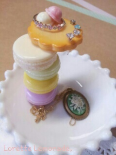 おはようございます、ayaです。 昨日ようやく自分用に作っていたアクセサリートレーが 完成しました! こんな感じのトレーです。 上のクッキーは取り外し可能。 ネックレスもアイスにかけてもいいですよね! クッキーに刺すピアスによってはピアスがデコ代わりになると 思ったので、シンプルに仕上げてみました。 フックのピアスとかかけると可愛いけど、 フックのピアス持ってない(^▽^;) イメージ通りにできたので良かったです! JUGEMテーマ:☆スイーツデコ☆