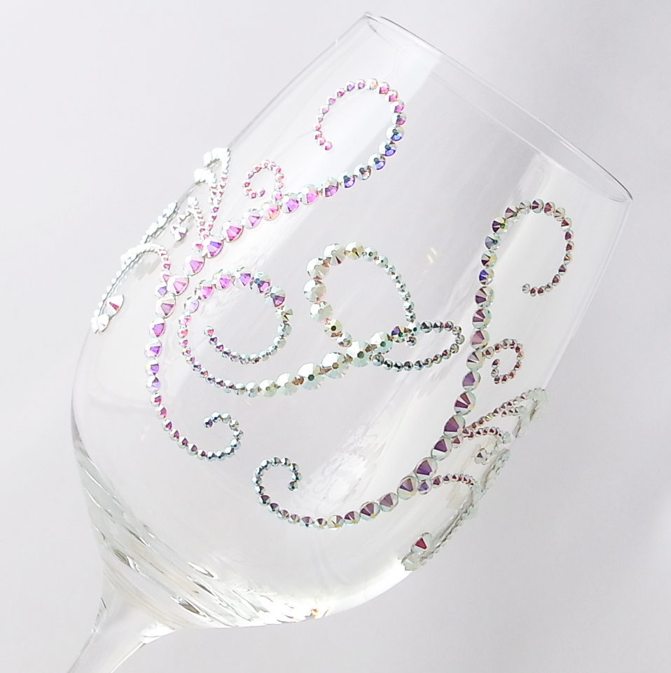 こんにちはDeco-glass cafe 菅原です。 本日の制作画像です。 赤ワイングラス イニシャル&ティアラです。 スワロフスキーはクリスタル アンホイルです。 ご注文ありがとうございました。 JUGEMテーマ:☆デコレーション☆