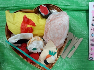 手作りのお弁当、ですが、アートのお弁当です。^^ こちらの写真はお祭りのときに子供たちと作ったものです。 お弁当に何をもっていきたい?と聞くと、ほとんどみんな、 おにぎり!と答えてくれました。 のりを巻いたおにぎりはお弁当のときに持っていく、という ちょっと特別な雰囲気もあるのでしょうか。 そして定番は、卵焼き、ソーセージ、ミニトマト、など。 微笑ましかったです。 今は外出を自粛している...