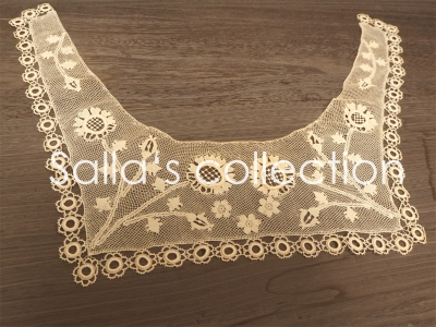 コロナ禍により、不幸中の幸いというか久しぶりに少し時間が出来たのでカメラを取り出してコレクションの撮影など。 アルメニアンレースの襟飾り。100年くらい前のものです。 何重にも巻いた糸で輪を作り、その周りをかがって始める方法を使用。また、その輪の中を白糸刺繍の技法で装飾する方法が使われています。と、書くのは簡単。綺麗に作るのは難しく。 昨年秋のダンテル講座で少し触れたはいいものの、最後まできちんとお伝え出来なかった心残りの方法です。 こちら、写真で見る...