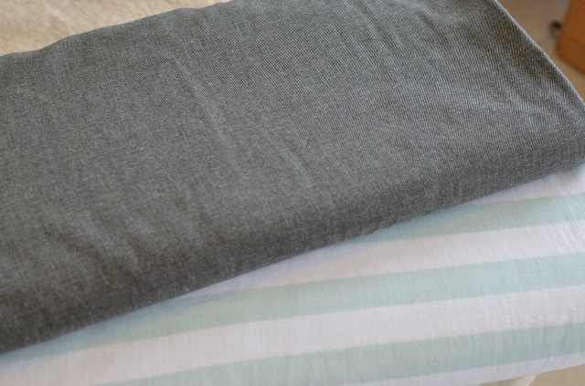 ダブルガーゼ 2種類届きました。 ミントグリーンボーダーは、これが最終入荷となります。 男性の方にお勧めのグレー しなやかな生地です。