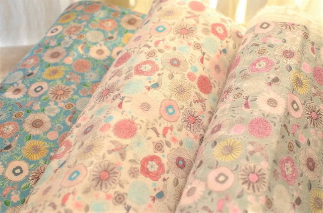 華やかなダブルガーゼが届きました♪ 色とりどりの花々と鳥たち ポップで優しい柄の生地です。 春のブラウスに、スタイやおくるみなどのベビーグッズにいかがでょうか(^-^) 綿100% 110cm幅 1300円/m +税 ※こちらは全色完売しましたm(__)m **** HPに "ダブルガーゼ" のページを追加しました。 現在在庫があるものに...