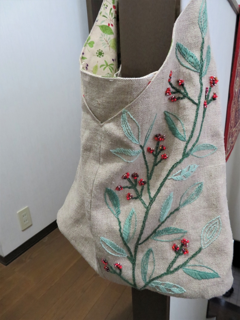 JUGEMテーマ:handmade JUGEMテーマ:クラフト・手芸 色々 朝から雨でした。 おっちゃんは、八幡浜の、展示会に朝から出かけて行きまし。 雨が降ってるので、買い物にも行けず、 門から1歩も出ませんでした。 手提げ縫いました。 麻のごわごわした布だったので、てこずりました。 大きめのビーズを入れています。 底は楕円形です。 裏地 孫の手提げの寸法を間違えました。 10?も小さかったので、置いてましたが、 裏もつけて仕上げました。誰...
