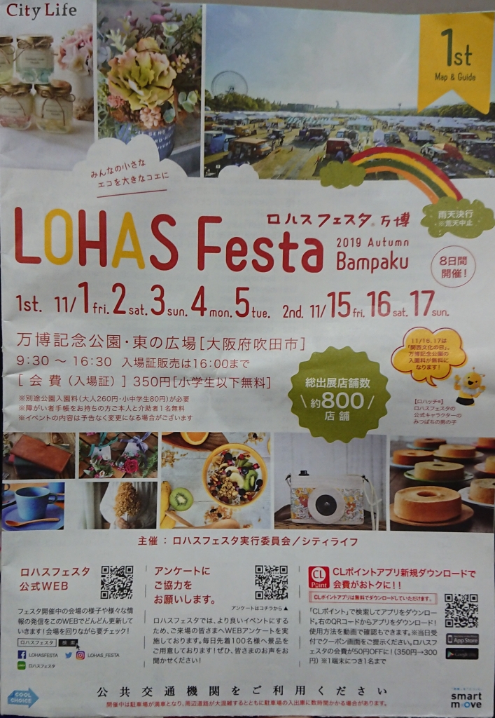JUGEMテーマ:クラフト・手芸 色々 万博記念公園で開催された「ロハスフェスタ」のファーストの日程(11月1日〜5日)に6名の作家さん達と共同で(合計7名で1ブース)参加させて頂きました。 私はバネ口のパクパクポーチを中心にシュシュや最後の方はちょっぴりワイヤーターバンも出品させて頂き、他の方は布やリボンのヘアアクセサリーやウェットティッシュケース、赤ちゃんの歯がためやおもちゃ、とっても軽いデコナップビーズのピアス、本物のフルーツを使ったアクセサリー、ワイヤーで形を作ってディップして...