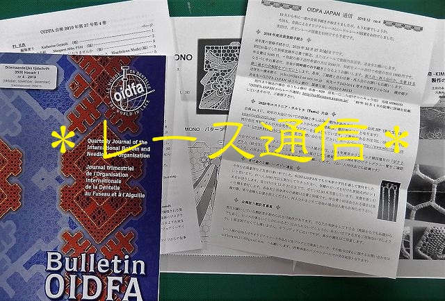 JUGEMテーマ:クラフト・手芸 色々 会員の皆様へ 「OIDFA JAPAN 通信」や希望者への和訳などを 発送また送信しましたのでお知らせします ベルギーからの会報誌2019-no.4は すでにお届けできていると思います (届いていない会員の方はお知らせ下さい) 今回は「通信」に 会員オリジナルのニードルレースパターン も付いています 次回は アンティークレース「アルジャンタン」 ご紹介の続きか お知らせを挟みます &nb...