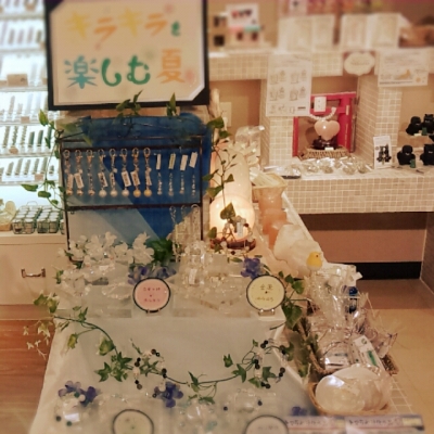 JUGEMテーマ:オリジナルアクセJUGEMテーマ:ラッキーアイテムJUGEMテーマ:パワーストーン 皆さま、こんにちはワールドカップのサッカー日本コートジボワール戦は残念でしたね前半リードしていただけに残念でしたが選手も雨の中大変だったろうと思いますこちらは続いていた雨がやみ青空も見える天気になってきましたこれから夏が始まります夏に向けてこんなコーナーが夏はキラキラしているものが涼しげでキレイに見えますよねアップで見るとこんな感じ皆さまも夏に備えてキラキラを楽しみましょう皆さまのご来店お待ちして...