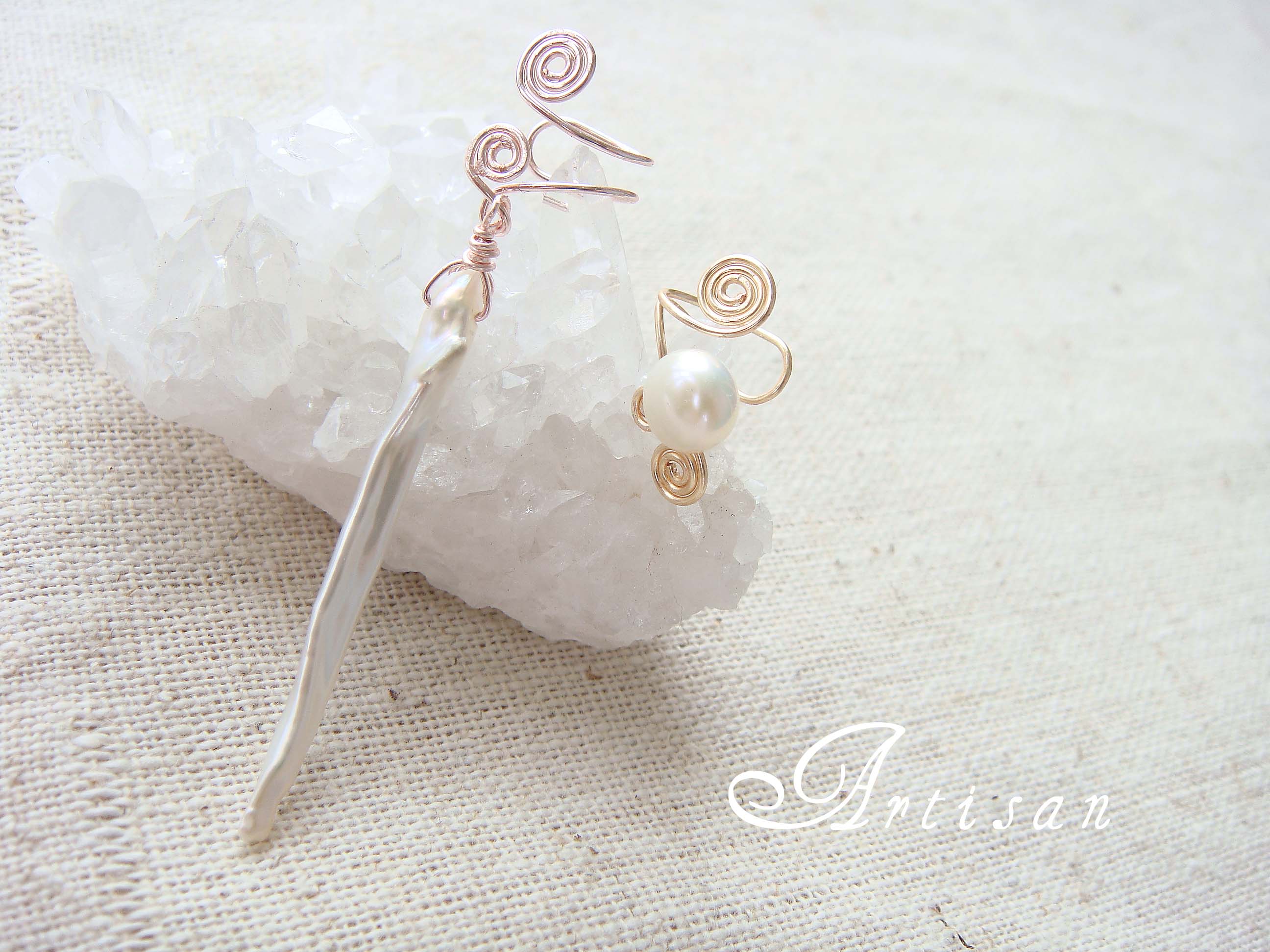 パールで飾る淡水パールを使った イヤーカフのオーダーでしたシンプルな1粒タイプと 耳元で揺れる 変形タイプのもの夏だけでなく これからの季節でもお使いいただけるのではないかと思いますJUGEMテーマ:オリジナルアクセ