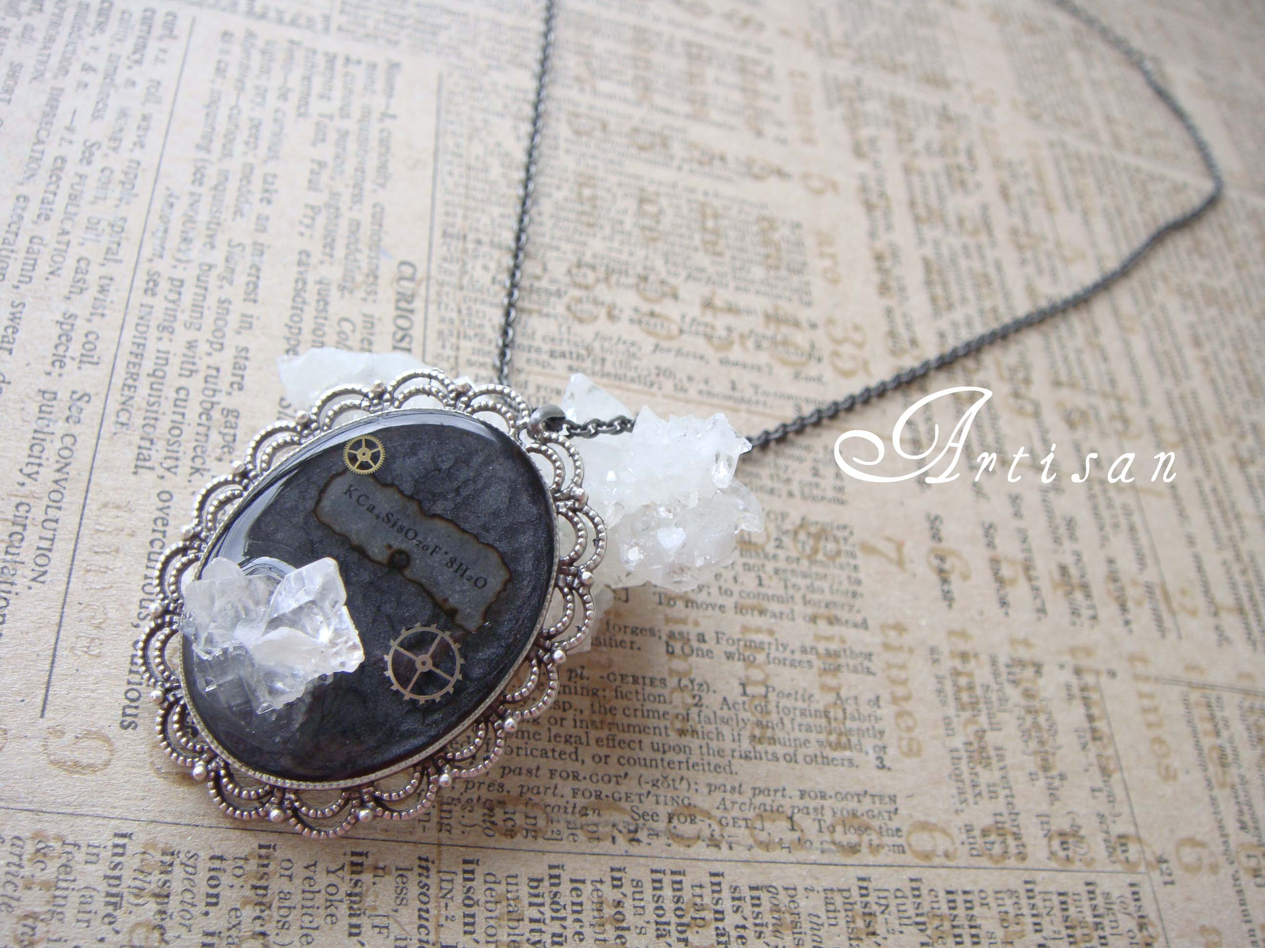 KCa4Si8O20F·8H2O(魚眼石) 小さなキラキラした結晶 水晶とはまた違った 輝きを放ちます 勉強会で 時折化学式を目にします 化学式を見ると 何の仲間なのかと興味がまた別の方向へ向きます 高校の時は 大好きな授業内容でした こんな大人になって 再び学ぶとは思ってもみませんでしたけど(笑) JUGEMテーマ:オリジナルアクセ