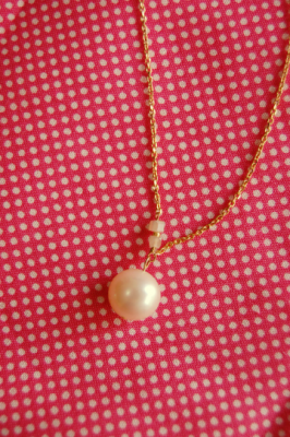 作った!と言えば、キットなのですが 年明けだったかな!?に淡水パールの一粒ネックレスも作ったのでした。 パールとスクエアカットのガラスの組み合わせ。 メガネ止めでつないだガラスのポイントが気に入っています。 アジャスター部分もガラスとパールの組み合わせ☆
