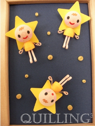 今日は、当店のキット「キラキラお星様」について書こうと思います。 キラキラお星様 このキットは、「クイリングで立体作品ってあまり作ったことないなあ」という方にぴったりです。 パーツは難しいものはなく、基本パーツが巻ければ[:OK:]です。 この中であえて一番難しい部分をあげるとすれば、手足の小さなパーツ作りです。 当店のキットには、小さなパーツがけっこう頻繁に出てきます。 こんなときは どうすればいい?クイリング 〜 ツール編 〜 にもご紹介させていただいた、日名子先生の極細スロットツールで巻...