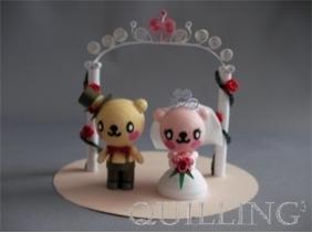 タイムリーなことに(?)先日友人から「結婚しました」ハガキが届きました。 さっそく、ウェルカムベアキット「ハッピーウェディング」を応用させてこんなプレゼントを作ってみました。 キットと少しベアの色合いが違ったり、台紙が違ったりしています。 これを透明の丸いケースに入れてプレゼントしようと思っています。 キット「ハッピーウェディング」はこちら。 今、1点のみ完成品もあります。完成品はこちら。 JUGEMテーマ:クイリング